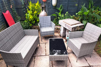 There a good size garden at the back of the bungalow with a patio where you can relax.